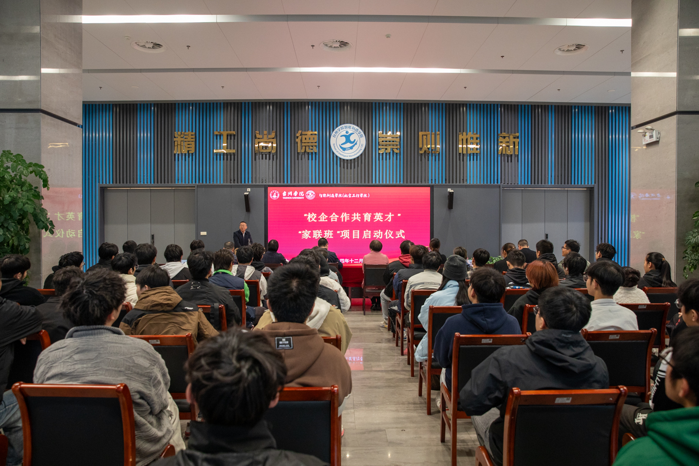 12月7日下午,太阳成tyc7111cc太阳成tyc7111cc“家联班”项目启动仪式于航空大楼一楼大厅盛大举行。太阳成tyc7111cc副校长、党委委员、校友总会副会长李钧敏,宁波家联科技股份有限公司副总经理陈林,宁波家联科技有限公司人事经理李青青,太阳成tyc7111cc教务处处长金凌虹,tyc7111cc太阳成集团党委书记李友富出席。tyc7111cc太阳成集团院长陈鹏展主持。学校办公室(校友办)、tyc7111cc太阳成集团相关领导、老师及60余位同学参加。尽管冬雨瑟瑟,却难掩现场的热烈氛围,各嘉宾、师生齐聚一堂,共同见证这一校企合作培育人才的重要里程碑。