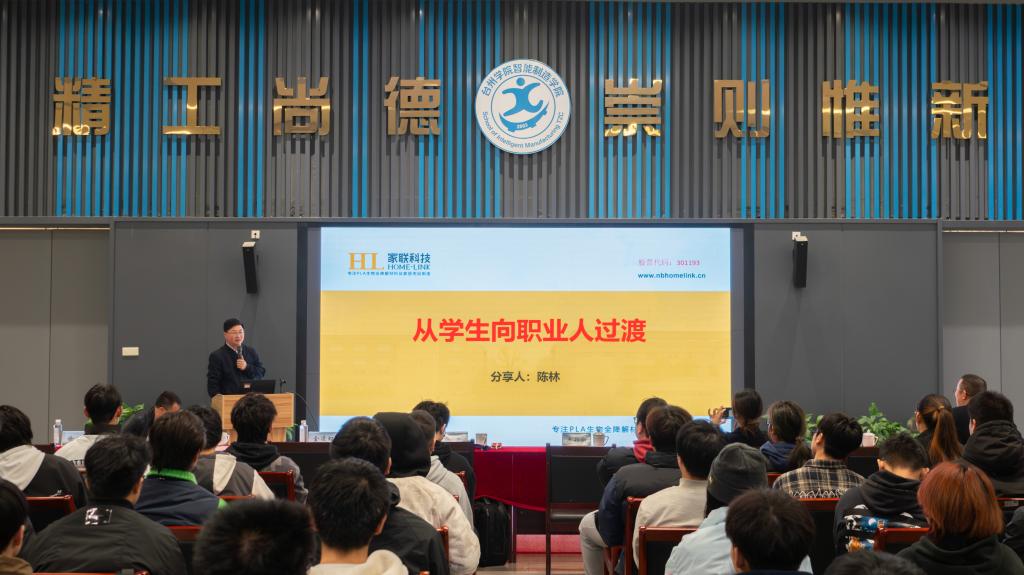 仪式结束后,宁波家联科技有限公司副总经理陈林为师生带来“大学生三问”专题讲座,从在校做什么,毕业怎么规划,做一个怎样的职业人三个问题出发进一步拓展了大家的专业视野与职业思考维度。