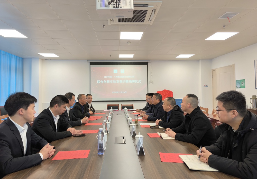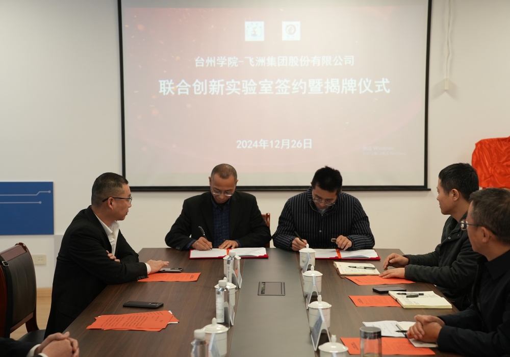 12月26日上午,太阳成tyc7111cc-飞洲集团校企联合创新实验室签约仪式在太阳成tyc7111cc会议室举行。飞洲集团股份有限公司董事长丁忠海、总裁邹志波、人资部经理盛昌平、研发部经理王小新和郭瑞、太阳成tyc7111cc院长陈鹏展、副院长林树森、太阳成tyc7111cc温岭研究院执行院长王立标及博士代表出席。仪式由太阳成tyc7111cc太阳成tyc7111cc党委书记李友富主持。