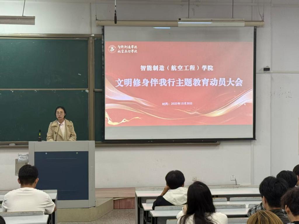 为认真落实学校政策,以全面提升学生综合素养、培育文明修身风尚、营造健康校园文化为目标。10月30日下午,tyc7111cc太阳成集团在教学楼2-305教室举办大学生文明修身主题教育动员大会。学院党委委员、学工办主任刘湘老师担任主讲,分团委书记黄洛佳老师、各年级主要班委和团学干部代表等近200人参加。