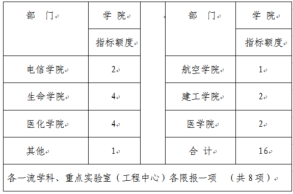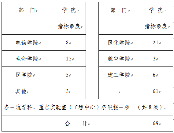 4.对于实际申报名额不足或过多的学院和部门请及时与科技处联系,便于科技处进行全校调济。