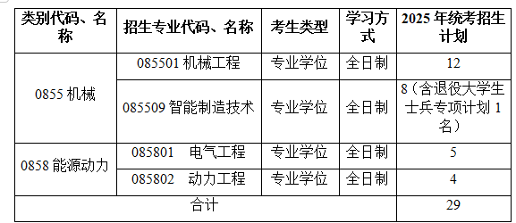0858能源动力:接收0802机械工程、0807动力工程及工程热物理、0808电气工程、0809电子科学与技术、0810信息与通信工程、0811控制科学与工程、0823交通运输工程、0824船舶与海洋工程、0825航空宇航科学与技术、0854电子信息、0855机械、0858能源动力、0861交通运输学科专业的考生调剂。