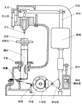 (1)将试样45钢放置在试样台上,顺时针转动手轮,使试样与压头缓慢接触,直至表盘小指针指到“0”为止,然后将表盘上指针调零。