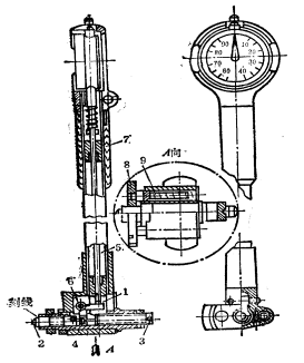 国产的内径千分表,常由活动测头工作行程不同的七种规格组成一套,用以测量10—450mm的内径,特别适用测量深孔,其典型结构如图1所示 。