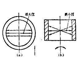 如为标准环,则需转动手轮7,同时应从目镜中找准转折点(图7a中的最大位置),在此位置上,扳动手柄8,再找转折点(图7b中的最小值),此处即为直径的正确位置。然后,将手柄9压下固紧。