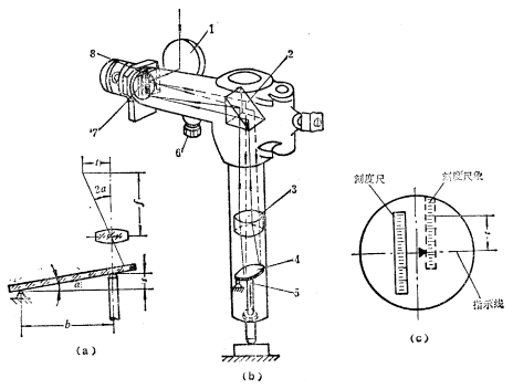 物镜至刻度尺8间的距离为物镜焦距f,设b为测杆中