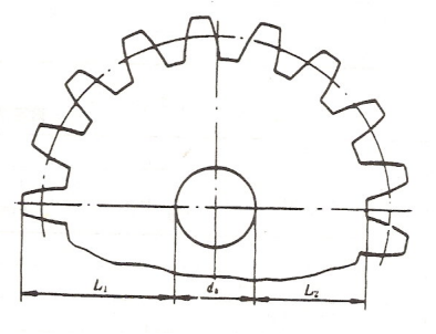 。如果齿数为奇数,则应先测量出齿轮轴孔直径dk,然后在测量轴孔到齿顶的距离L1和轴孔到齿根的距离L2,如图2所示。