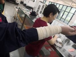 受伤学生手臂救护现场