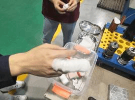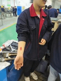 演练模拟实训中心普通铣床实习现场发生机械伤害事故,一名实训学生在使用铣床时,被铣床铁屑挂伤手臂;另一名学生,在实习过程中,手臂被铁屑刮伤,鲜血直流。发生机械伤害时发现人员能第一时间按下急停按钮关掉设备,并大声呼救。在旁边的实习指导教师发现伤情向实训安全组长报告,并立即启动机械伤害事故应急处置。
