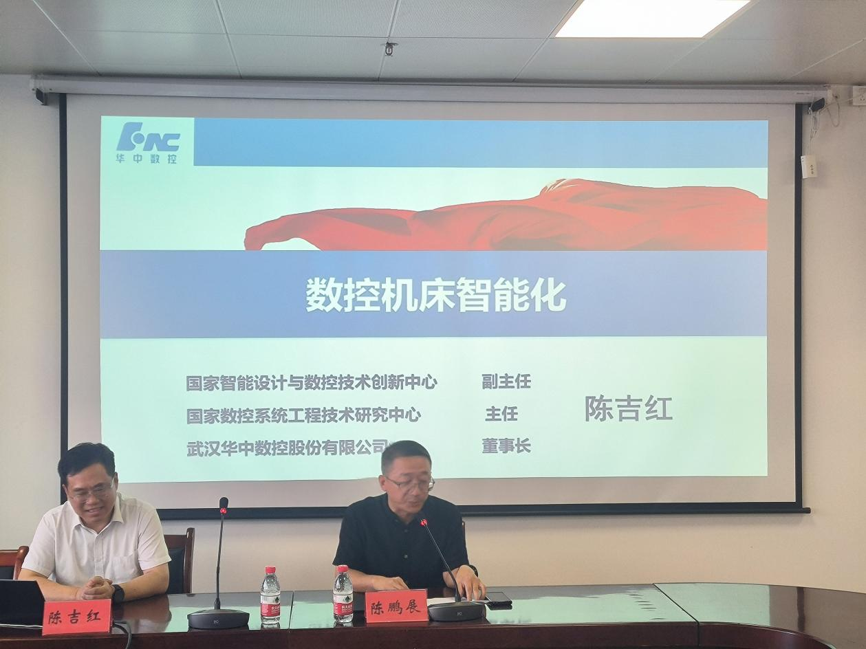 陈吉红结合自己多年的研究和实践经历,主要介绍了“工业4.0”概念、国家智能制造发展战略、智能机床内涵及发展形势和人工智能数控系统,并且还给大家分享了《智能制造技术发展趋势与人才培养方案的探索》学术报告。华中数控与华中科技大学三十年来产学研紧密合作,以打破国外封锁限制、振兴民族数控产业为已任,长期坚持前沿创新,努力打造中国自主品牌,用“中国大脑”装备“中国制造”,提升中国制造业的智能化水平。与此同时,华中数控多年来深耕智能制造领域,积累了深厚的产学研合作经验,坚持“三门课一中心”理念,参与、见证了中国数控、机器人和智能制造应用技术高技能人才的培养历程,为行业培育、输送了大量高优秀人才,助力行业高质量发展。会上,与师生进行热烈地互动交流。会后,还与相关专业教师进行了进一步深入交流探讨。