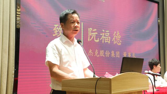 杰克集团董事长阮福德出席了开学典礼。他表示很羡慕同学们,因为“他没有上过大学,没有得到过系统的学习”。